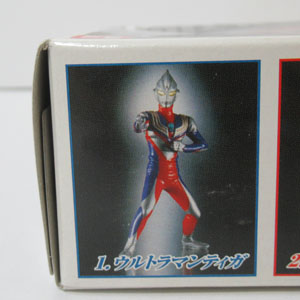 画像1.未開封品 画像2.左下部分凹みあり。画像3.左底部分、汚れあり。画像4.箱の中身(1.ウルトラマンティガ)